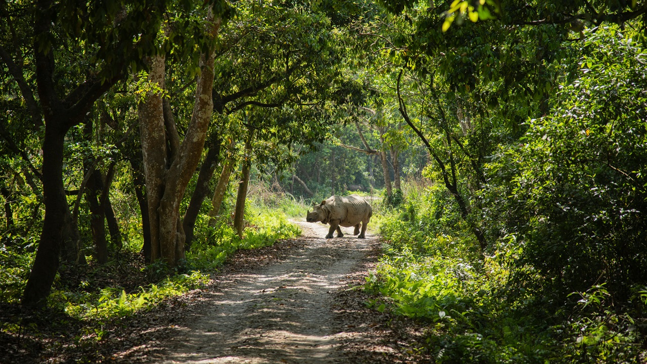 Il Royal Chitwan National Park, enorme riserva naturale del Terai centrale, è stato istituito nel 1973 e dichiarato Patrimonio dell’Umanità nel 1984. I suoi 932 kmq di estensione contengono alberi di sal, giungla, praterie, fiumi e laghi, campi di riso e villaggi tharu. Il parco è uno degli ultimi rifugi del rinoceronte indiano a un solo corno, che vedremo quasi certamente essendo comune in questi luoghi, anche se a rischio di estinzione, e ospita numerose colonie di tigri e leopardi (questi invece difficili da vedere in quanto molto elusivi), oltre a diverse specie di mammiferi, come scimmie, orsi, cinghiali, cervi, elefanti; è inoltre un paradiso per l’osservazione degli uccelli e delle farfalle.