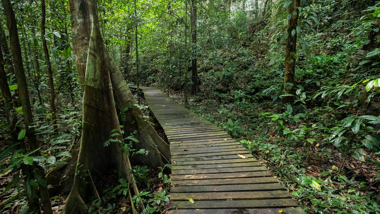 Tutte le canopy walks sono intrinsecamente spettacolari per natura ma quella di Mulu, oltre a essere lunghissima, si sviluppa al fianco di una maestosa parete carsica che arricchisce ancora di più lo scenario complessivo. Tra gli animali che potremmo osservare ci sono molte specie di uccelli e i draco, rettili ‘volanti’ che non è raro osservare planare da un albero all’altro. Oltre alla fauna, potremmo anche osservare diverse specie di orchidee epifite solitamente difficili da individuare da terra.