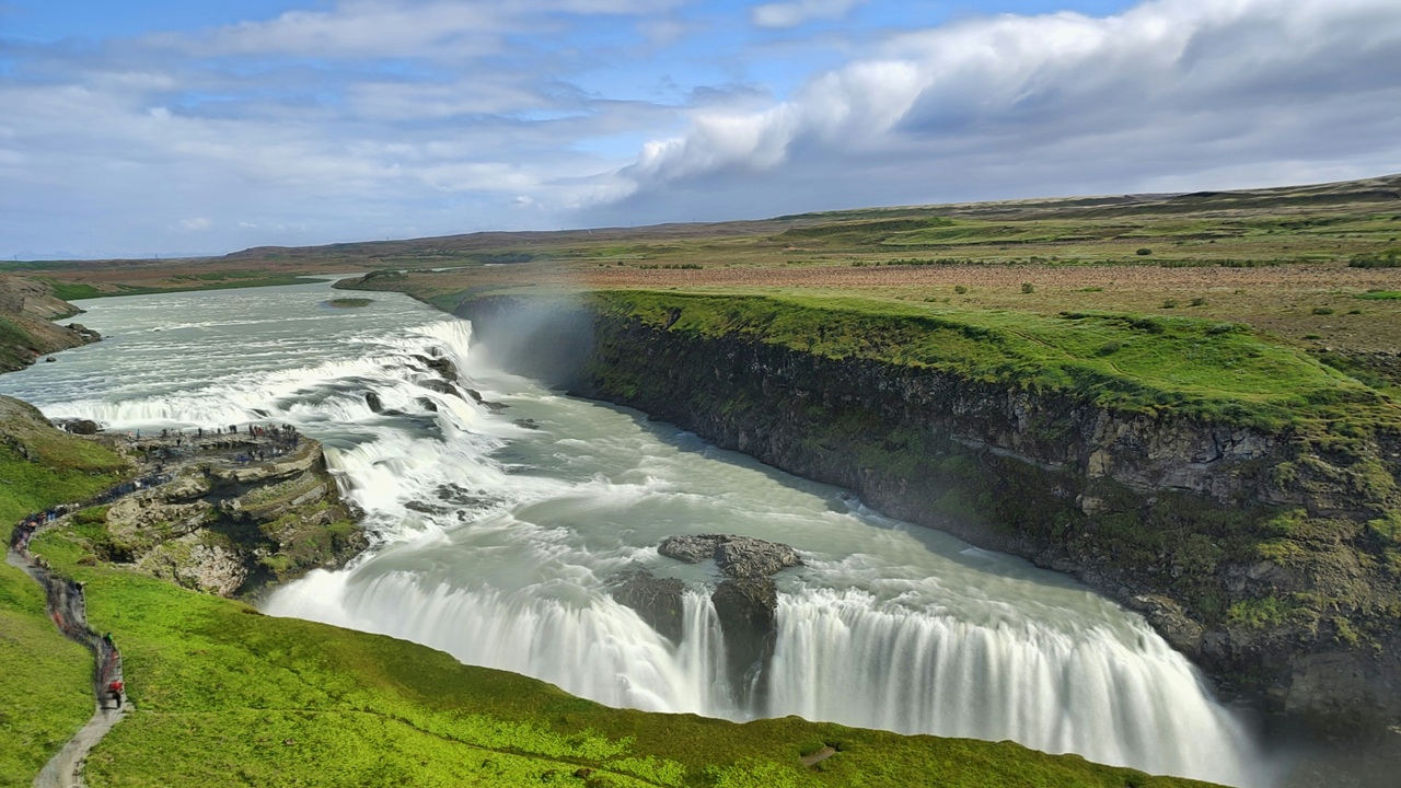 Dopo la pausa pranzo, ci concentreremo sulle straordinarie meraviglie del Circolo d'Oro, simbolo di questa terra leggendaria. Il Geysir, che ci lascerà a bocca aperta con le sue eruzioni di vapore che esplodono a intervalli regolari. A breve distanza, il Gullfoss, una delle cascate più spettacolari d'Islanda, si getta in un profondo canyon, regalando uno spettacolo di potenza naturale senza pari.