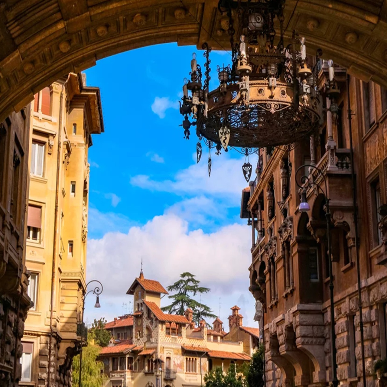 Nel cuore di Roma, a due passi dal centro storico si trova uno dei quartieri più caratteristici della città. In realtà non un vero quartiere, ma un angolo di Roma dalle fattezze inaspettate e bizzarre, un fantastico miscuglio di arte Liberty, Art Decò, con infiltrazioni di arte greca, gotica, barocca e addirittura medievale. Parliamo del quartiere Coppedè, un complesso di 26 palazzine e 17 villini che sorge tra la Salaria e la Nomentana. Un “arcone” riccamente decorato congiunge i due palazzi degli ambasciatori e definisce l’ingresso del quartiere progettato e realizzato, tra il 1915 e il 1927, dall’eclettico architetto Gino Coppedè, da cui prende il nome. L’insieme dei fabbricati, l’incredibile “pastiche” di linguaggi architettonici, che immergono il visitatore nell’atmosfera sfarzosa, e anche un poco fittizia, degli inizi Novecento si articola intorno a piazza Mincio, dove lo spazio centrale è occupato dalla Fontana delle Rane.