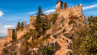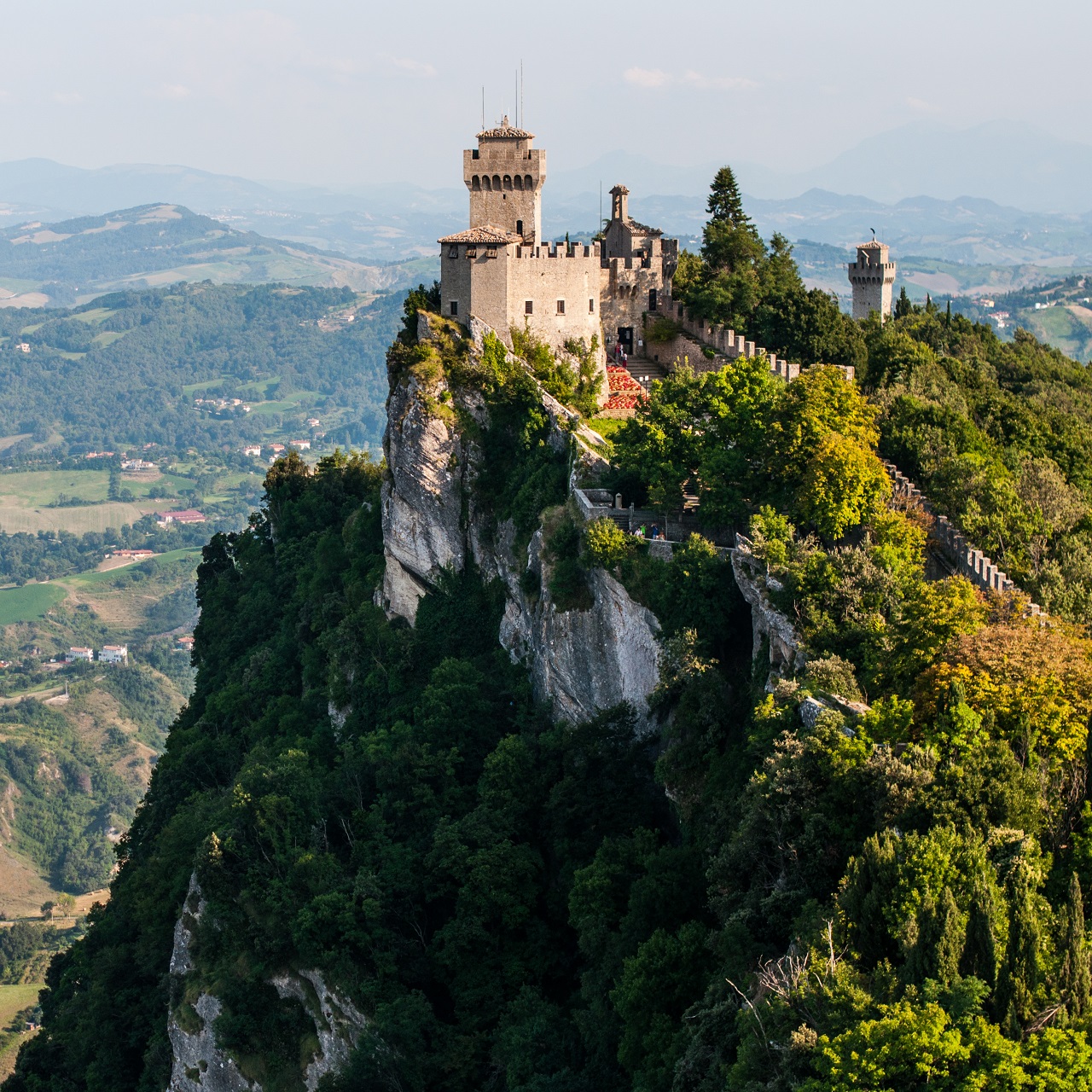 La Città di San Marino, centro principale della piccola Repubblica, non è solo storia, ma è anche avventura e natura. Partiremo da Borgomaggiore, nei pressi del parcheggio della Funivia. Saliremo nel Borgo, da dove si prende il Sentiero della Rupe che ci porta sotto le torri di San Marino con ottime vedute di tutta la Riviera Romagnola. Il sentiero percorre poi il bosco sotto alle Tre Torri di San Marino, e conduce a Piazzale Kennedy dove si trovano la sede del Comando della Gendarmeria e della Radio-Televisione di Stato. Da qui è facile raggiungere la Terza Torre, poi la seconda e la prima percorrendo il sentiero lungo la cinta muraria, che attraversa anche il suggestivo Passo delle Streghe. Una volta in città, ci sarà del tempo a disposizione per visite e shopping. Al ritorno si potrà scegliere tra la discesa in funivia, o, dalla Cava dei Balestrieri proseguendo per Contrada Omerelli, si potrà percorrere la strada che costeggia il monte e che, attraverso la Porta della Rupe, in 10 minuti di discesa, a tratti ripida ma sempre larga e comoda, riporta a Borgo Maggiore e infine al punto di partenza.