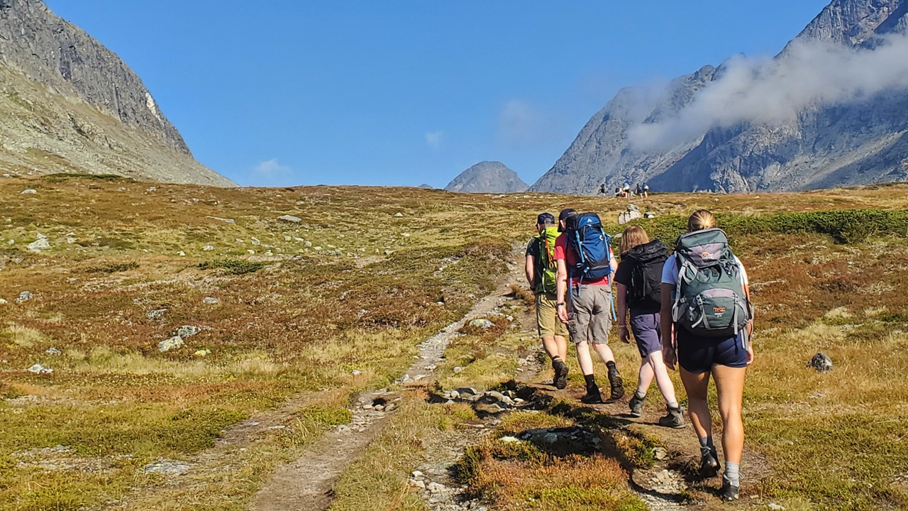 Partenza per l’escursione sulle panoramiche alture di Stryn, lungo il lago Lovattnett tra boschi che a tratti si aprono per lasciare spazio ad ampi panorami sulle montagne circostanti.