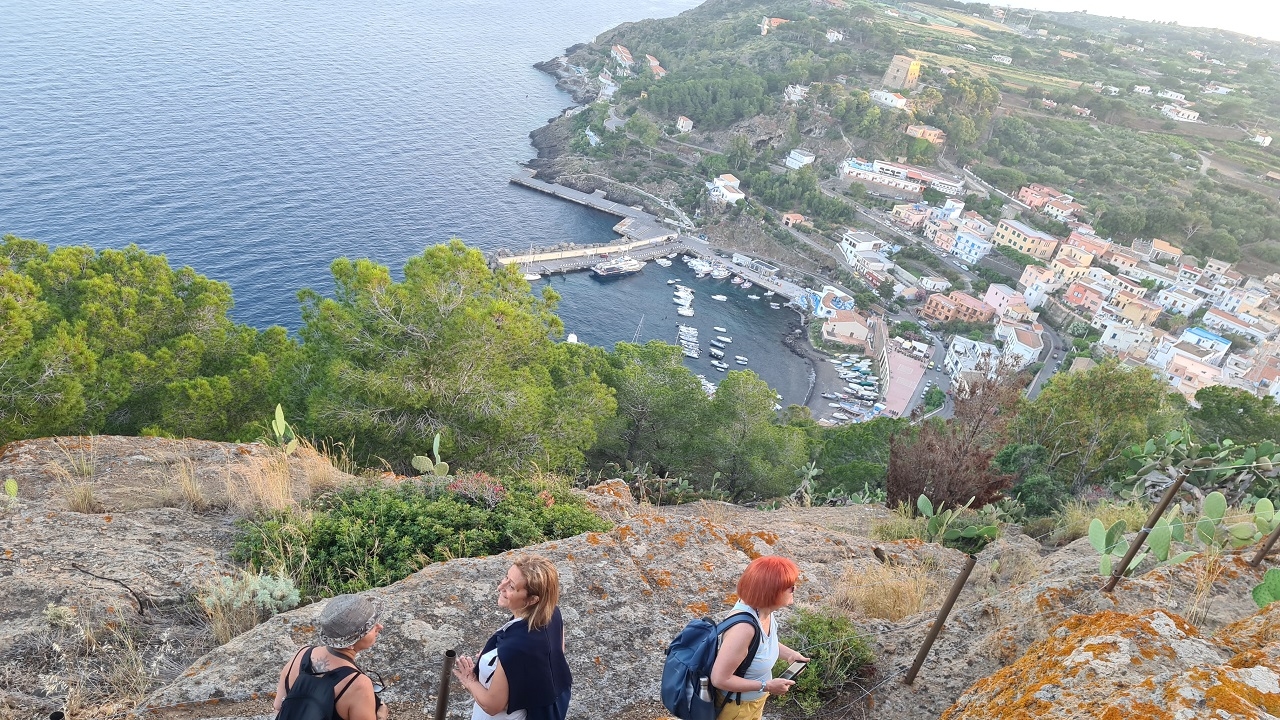 A seguire trekking sui sentieri boscosi da cui ammireremo il villaggio preistorico e i panorami di Tramontana fino al Passo della Madonna. A 11 anni dall’istituzione della Riserva Marina, è stata istituita anche una Riserva Naturale Orientata Terrestre che ha portato a una trasformazione del versante settentrionale, nella contrada Tramontana. Rivolgendo lo sguardo verso l’interno, si vedono due colline boscose, due coni vulcanici distinti in cui si incontrano lecci, ogliastri, carrubi e una serie di altre piante endemiche a cui si aggiungono moltissimi pini marittimi e pini di Aleppo, frutto di una cospicua azione di riforestazione. La costa settentrionale è forse più aspra di quella di Mezzogiorno e offre pochissimi punti di accesso al mare ma panorami ineguagliabili.