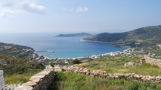 Raggiungeremo la Panaghia Mangana immersa nel verde e con un bel cortile dove sostare all’ombra. Di li scenderemo verso la nuova strada e con un bus raggiungeremo la baia di Cheronissos. Avremo la possibilità di fare un bel bagno per poi con una breve passeggiata di 15 minuti raggiungere la chiesa di Aghio Georgios posta sulla sommità del promontorio più a nord di Sifnos.