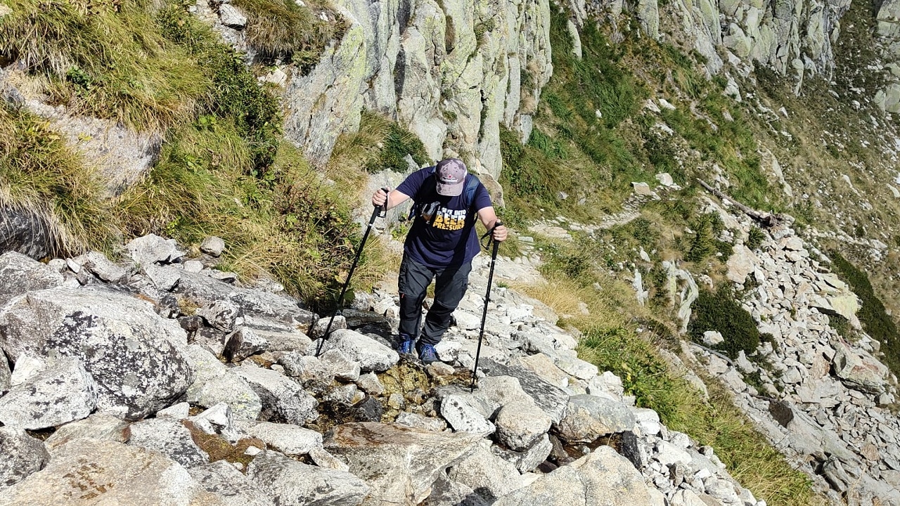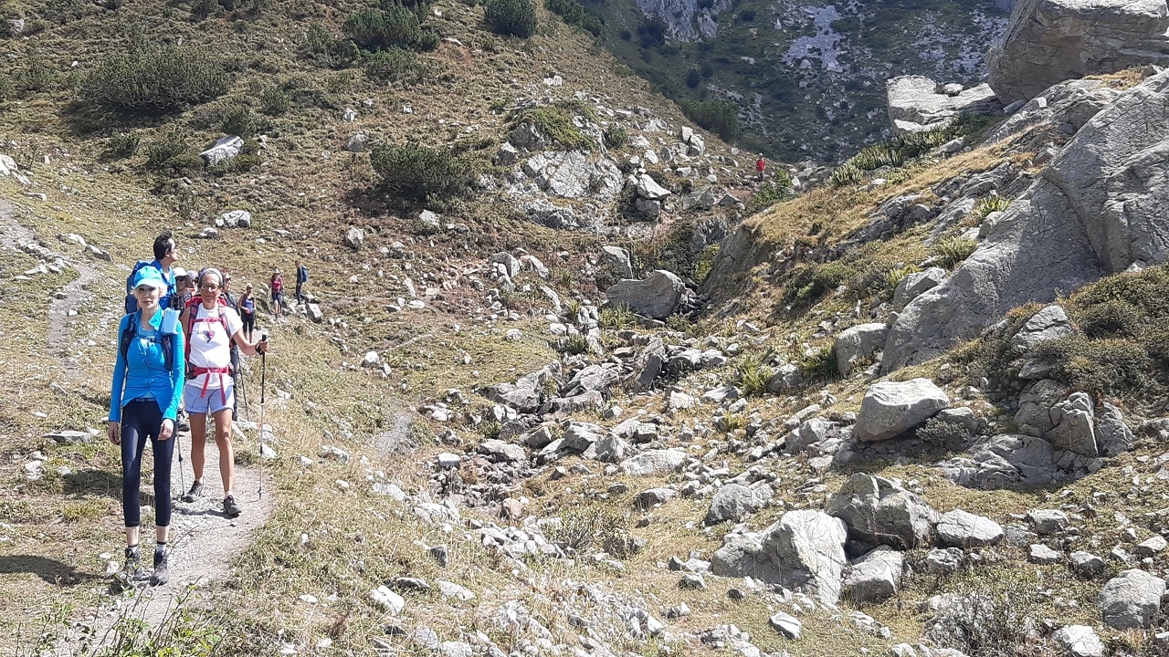 Continuiamo la nostra salita, sempre su sentiero-strada militare, salendo di quota via via fino ad arrivare a quota 2265m, dove incontriamo il primo lago, quello di Valscura, le cui acque limpide e trasparenti ricordano più un atollo tropicale che un lago glaciale. La nostra escursione prosegue verso i laghi del Claus e delle Portette, seguendo il sentiero che in alcuni tratti assume i caratteri di una via himalaiana, fatta di pietre disposte sapientemente a formare uno stradello. L'arrivo al Rifugio Questa (2388m) segna la fine della salita e il meritato riposo, fatto di un ottimo pranzo, prima della discesa, che chiuderà il nostro anello escursionistico di oggi.