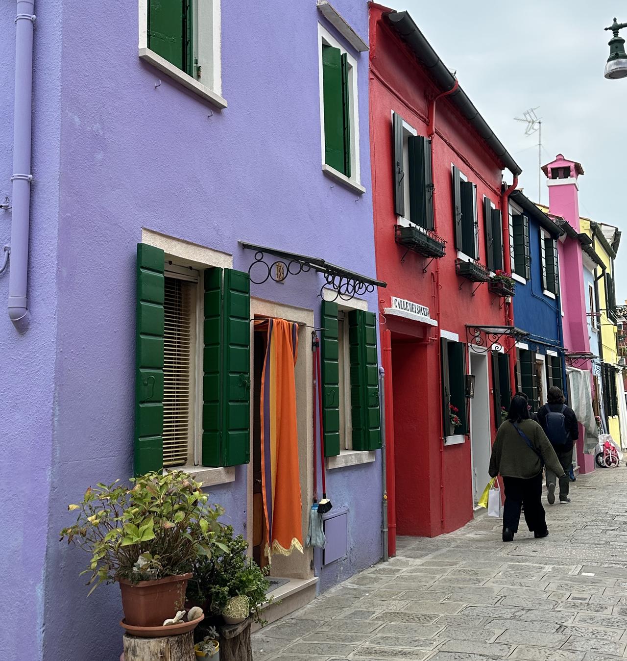Ci troveremo di fronte all’ormai noto Forte Vecchio e ci prepareremo ad imbarcarci. Raggiungeremo una spiaggia deserta a contatto con la flora e la fauna della laguna, dove faremo una sosta. Qui avremo modo di conoscere meglio le speciali piante che sopravvivono nell’acqua salata della laguna e che costituiscono le cosiddette barene. Ascolteremo e osserveremo la fauna che le abita. Da lontano vedremo l’isola di Burano, col suo inconfondibile campanile pendente. Ripartiremo e sbarcheremo a Burano, che ci accoglie con le sue case supercolorate. Sbarcheremo vicino alla casa di Remigio Barbaro, un famoso scultore di Burano, e sarà lo spunto per raccontarti la storia della sua vita, un bellissimo esempio di resilienza. Passeggeremo tra le calli di Burano respirando un’aria allegra e spensierata. Ti svelerò perché le case sono così colorate e ne raggiungeremo una multicolore. Passeggiando avremo modo di notare alcune usanze particolari. Nelle chiese ti racconterò le leggende che aleggiano attorno ad alcune opere e il motivo per cui il campanile è così pendente. Entreremo nel museo del merletto, dove apprezzeremo questa famosissima tradizione buranella. E parlando di trazioni, non potrà mancare la visita ai banchi del mercato del pesce e una visita al laboratorio di produzione dei bussolà, i biscotti tipici di Burano.
